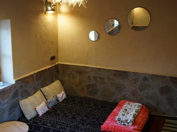 Experience comfort and tranquility in our Ait Ali Double Room at Berber Nomad Bio Lodge. This cozy cabin is designed for couples or solo travelers seeking a peaceful retreat. Enjoy modern amenities, a comfortable bed, and a private space to unwind after a day of exploration in the beautiful surroundings of Morocco’s south.